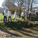 Pèlerines et parapluies pour les six courageux marcheurs qui ont affronté la pluie cet après-midi… Partant de la salle polyvalente du bourg, nous sommes passés devant la petite tour Eiffel à laquelle est accolé maintenant le nom d’Apach, œuvre de Sylvain Divo et des enfants des écoles.