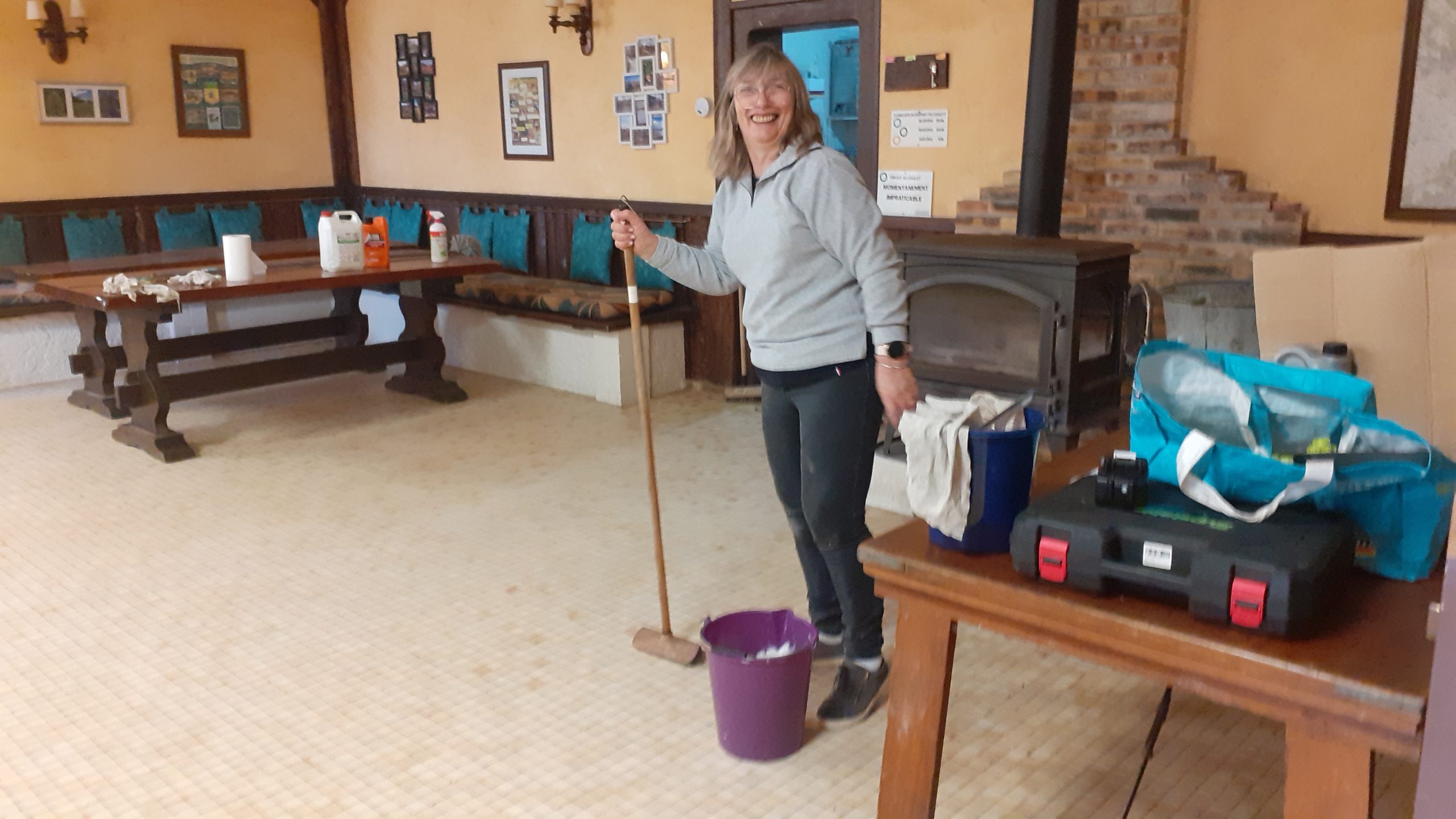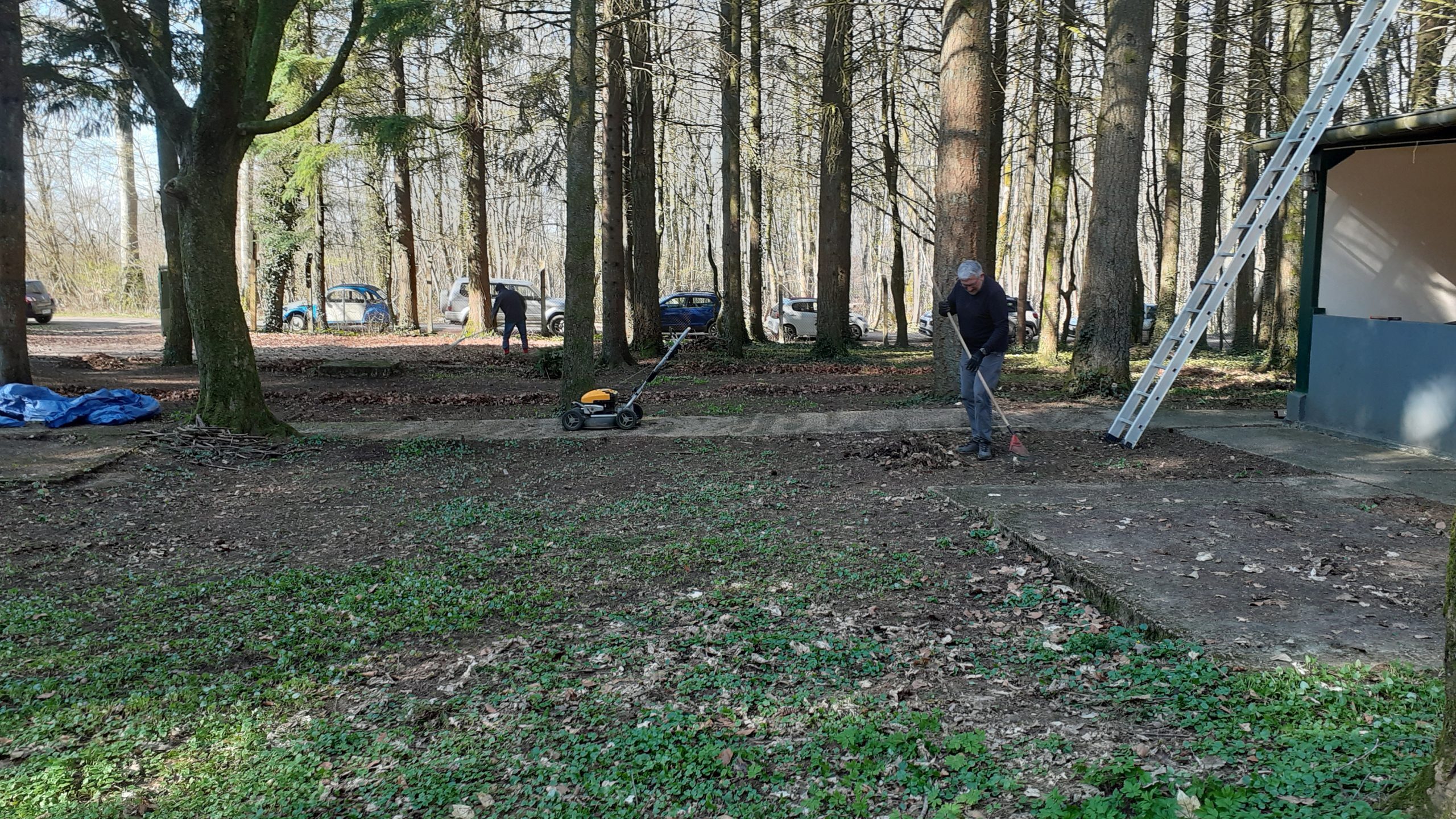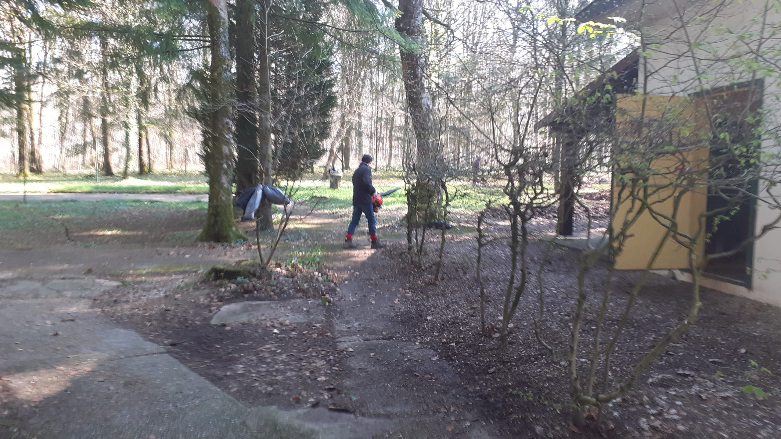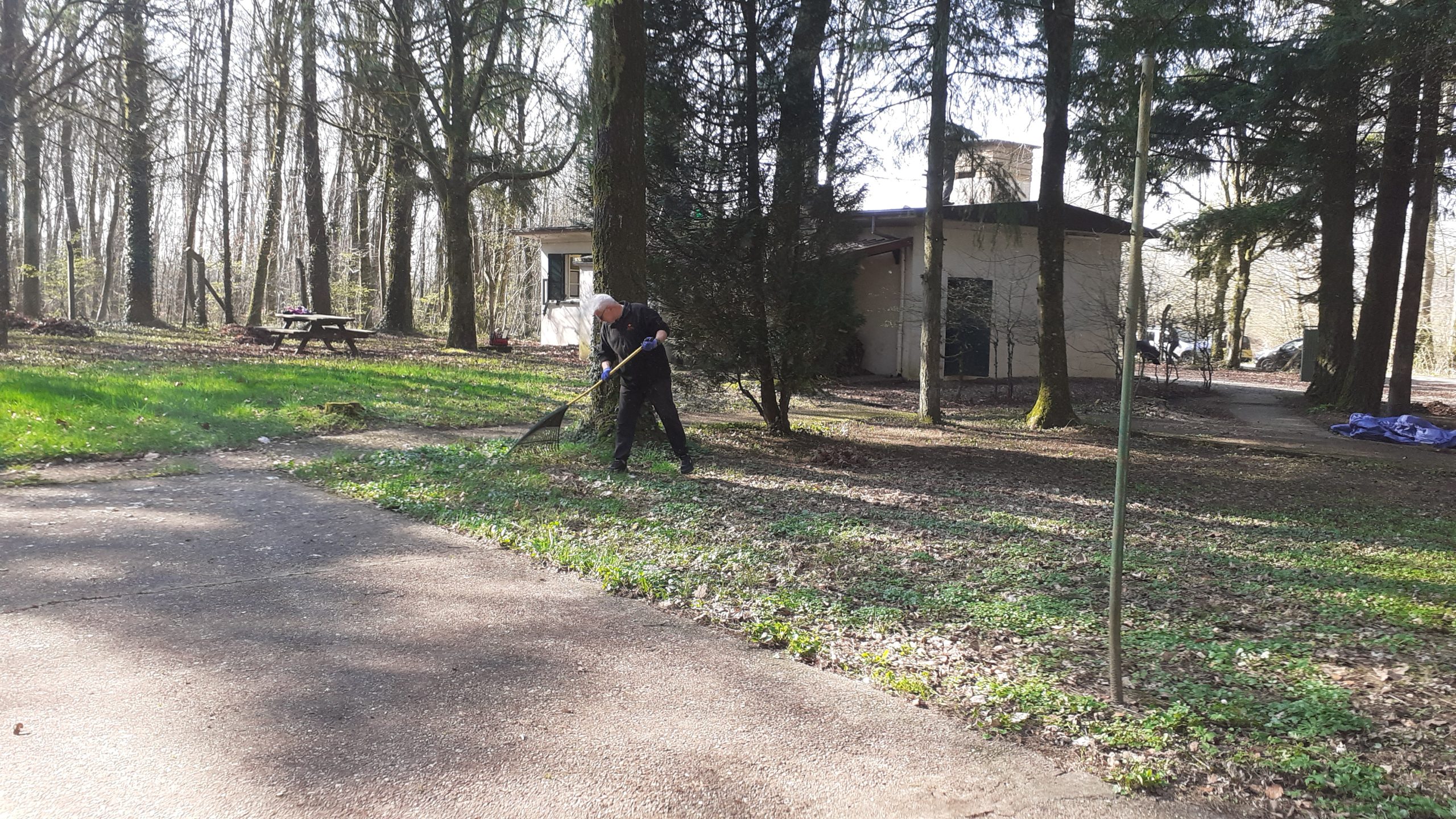 Enlèvement des feuilles, des branches à terre, nettoyage des toits, coupes du bois à terre, comblement des fissures en façade du chalet, grand nettoyage à l’intérieur, etc… la matinée fut productive pour la vingtaine de bénévoles présente en cette agréable journée.