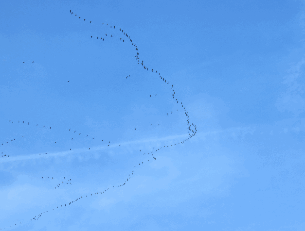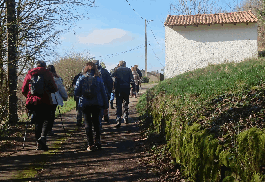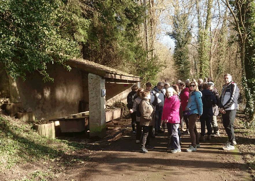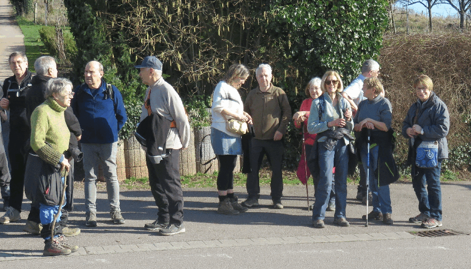 Au vu de la météo pluvieuse des derniers jours qui a rendu les chemins très boueux, Josiane a préféré nous emmener cet après-midi sur des voies en macadam – ou plus exactement en « enrobé » … – afin de nous éviter la corvée de nettoyage des chaussures au retour. Par contre la marche s’est déroulée ce mercredi sous un beau ciel bleu et un grand soleil annonçant le printemps, comme en témoignait le passage des grues qui nous ont survolé en provenance du sud.