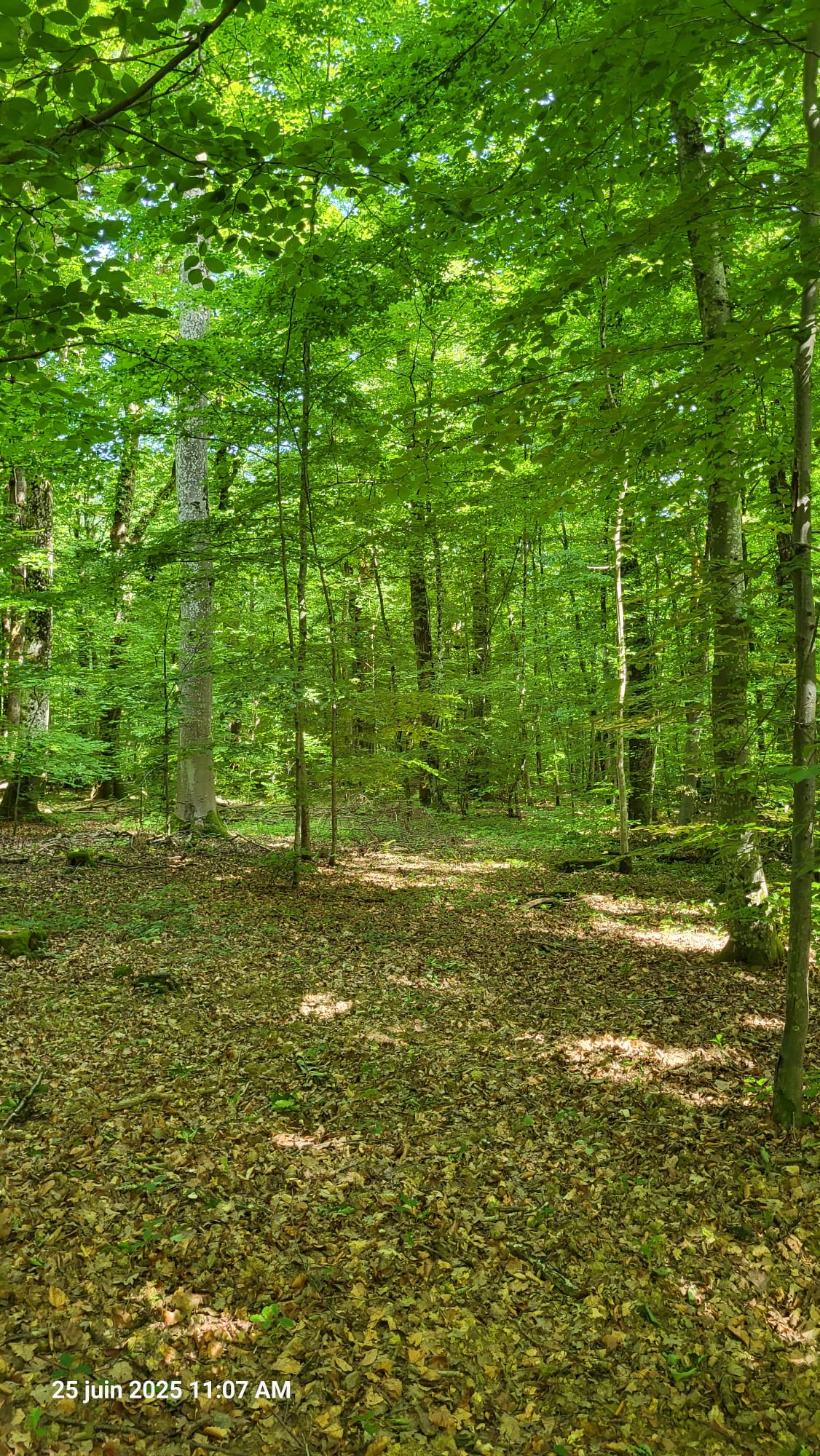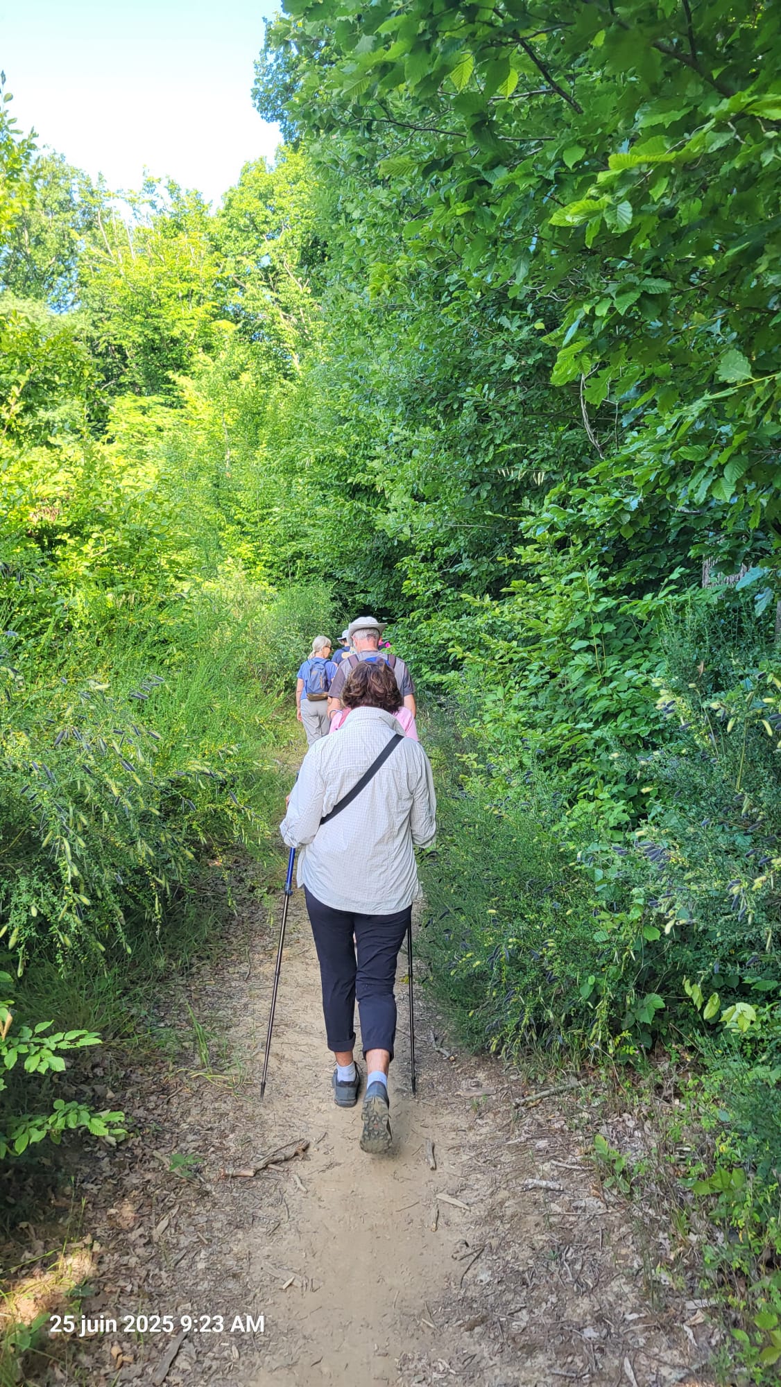 De là nous sommes montés jusqu’à l’ancien chalet du Club Vosgien et redescendus vers Elange. Nous avons bifurqué vers le parking par la forêt pour éviter une partie en plein soleil (déjà pratiquement 30° à 11h30).